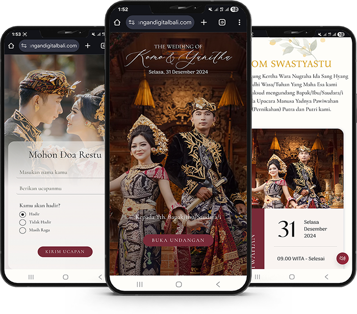 Undangan digital bisa langsung dikirim lewat link, seperti contoh : https://undanganresmi.com/namakamu atau whatsapp, email dan media sosial lainya